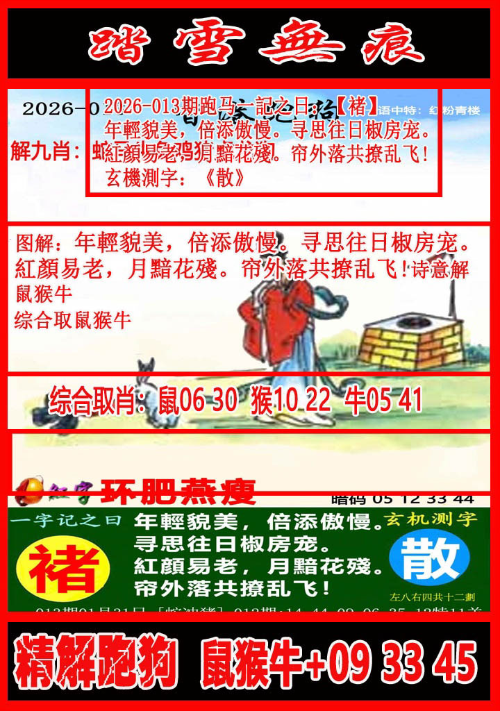 013期:【富贵人生】━━━【解析跑狗玄机】━━━个人心水分析!